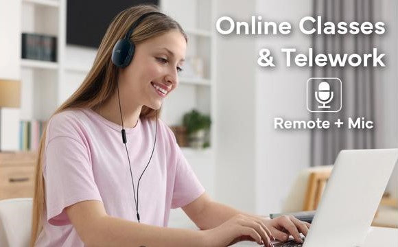 - Essential for online classes, calls and teleworking by being wired and having remote/integrated microphone.