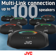The SP-PA15BT Wireless Boombox Speaker delivers big sound and big bass. Bluetooth 5.3 allows a wireless connection range up to 30 feet, while the Link function offers the capability of adding up to 99 additional SP-PA15BT units for a truly immersive and wireless sound stage experience. Enjoy your music anywhere you go with up to 11 hours of audio, perfect for home, outdoor use or poolside.