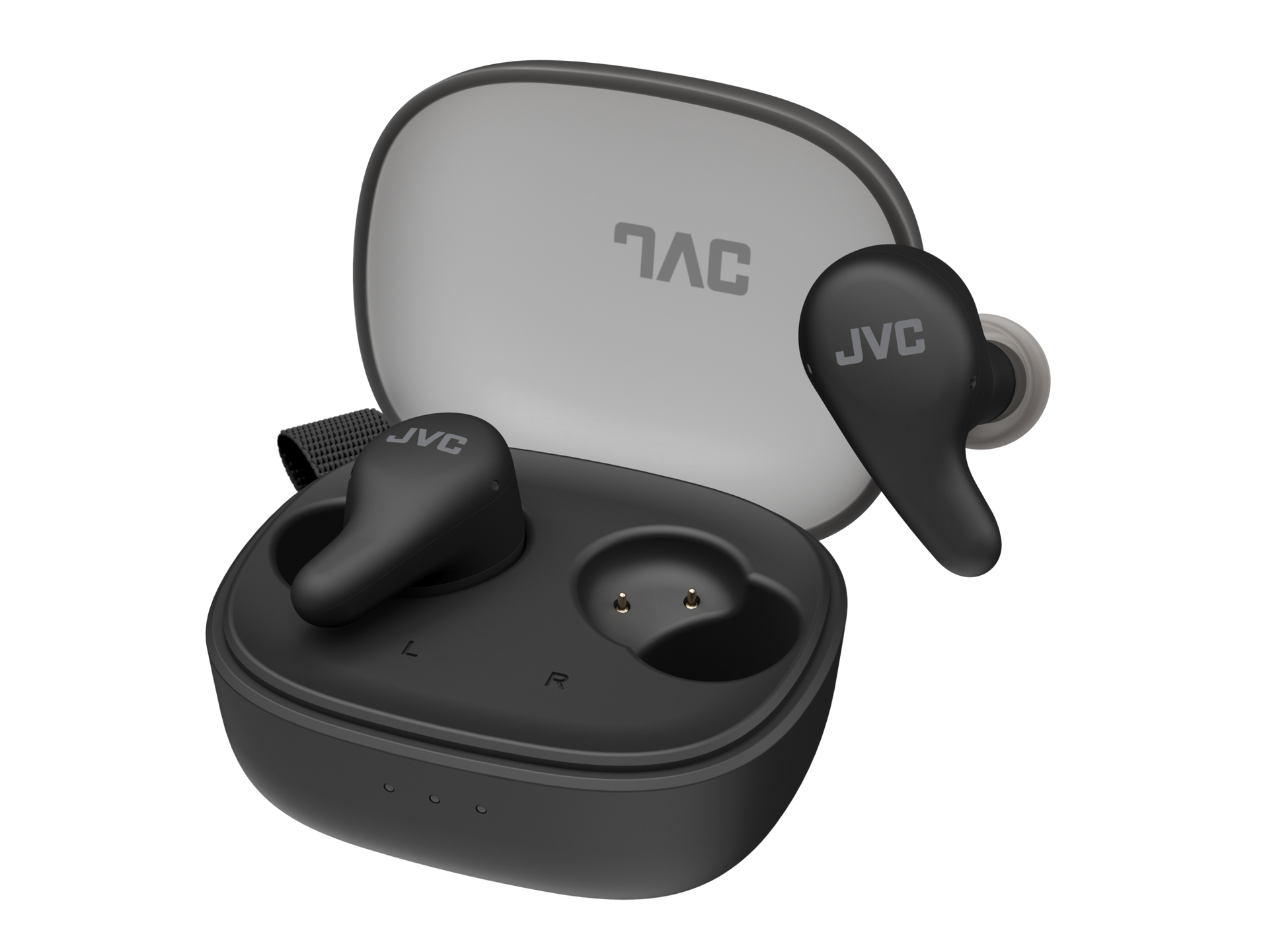 - Compact charging case with strap holder