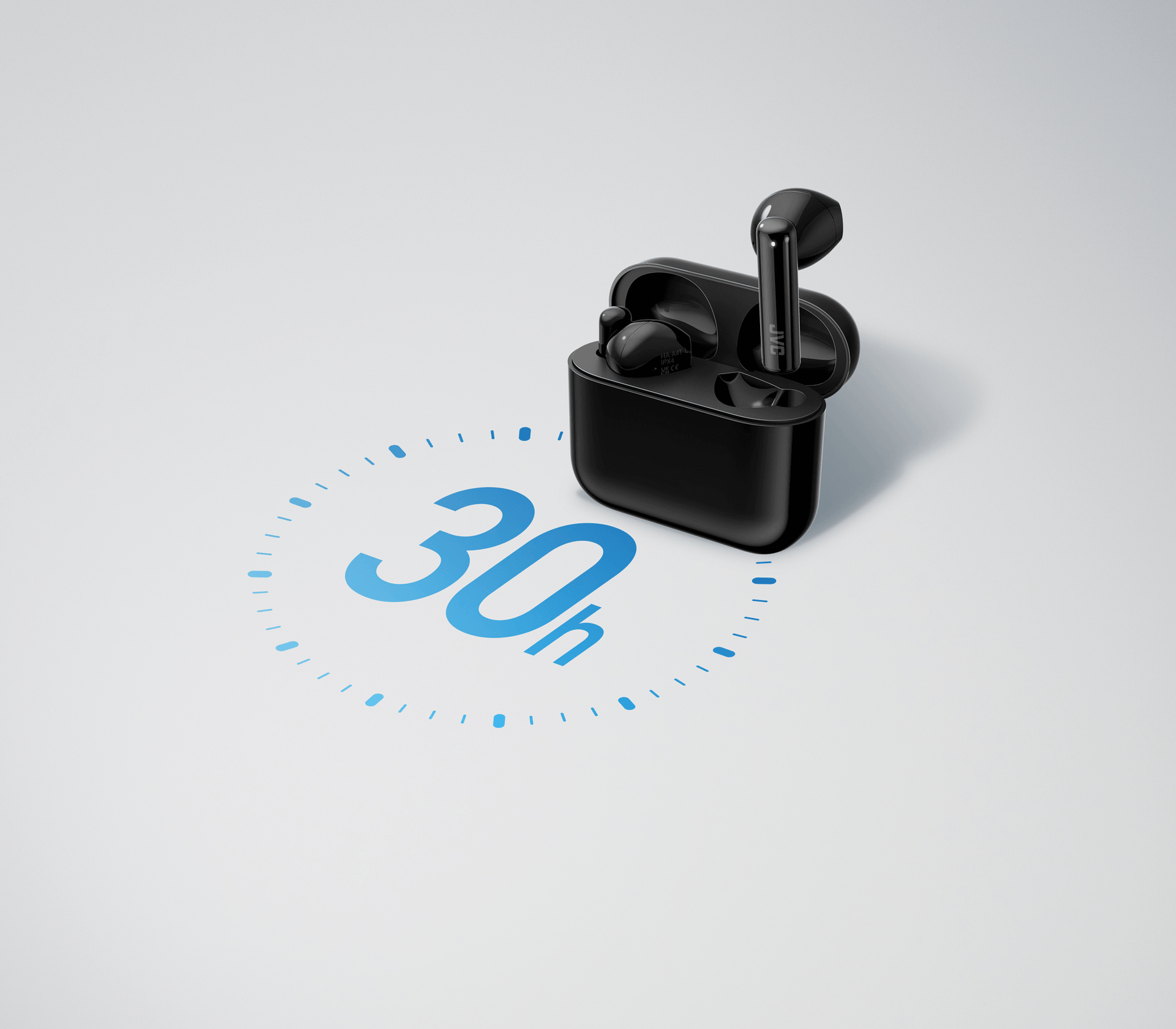 L'étui de transport/chargement de couleur assortie offre 15 heures supplémentaires de charge en déplacement (soit jusqu'à 22 heures au total) et gardera vos précieux écouteurs sains et saufs.