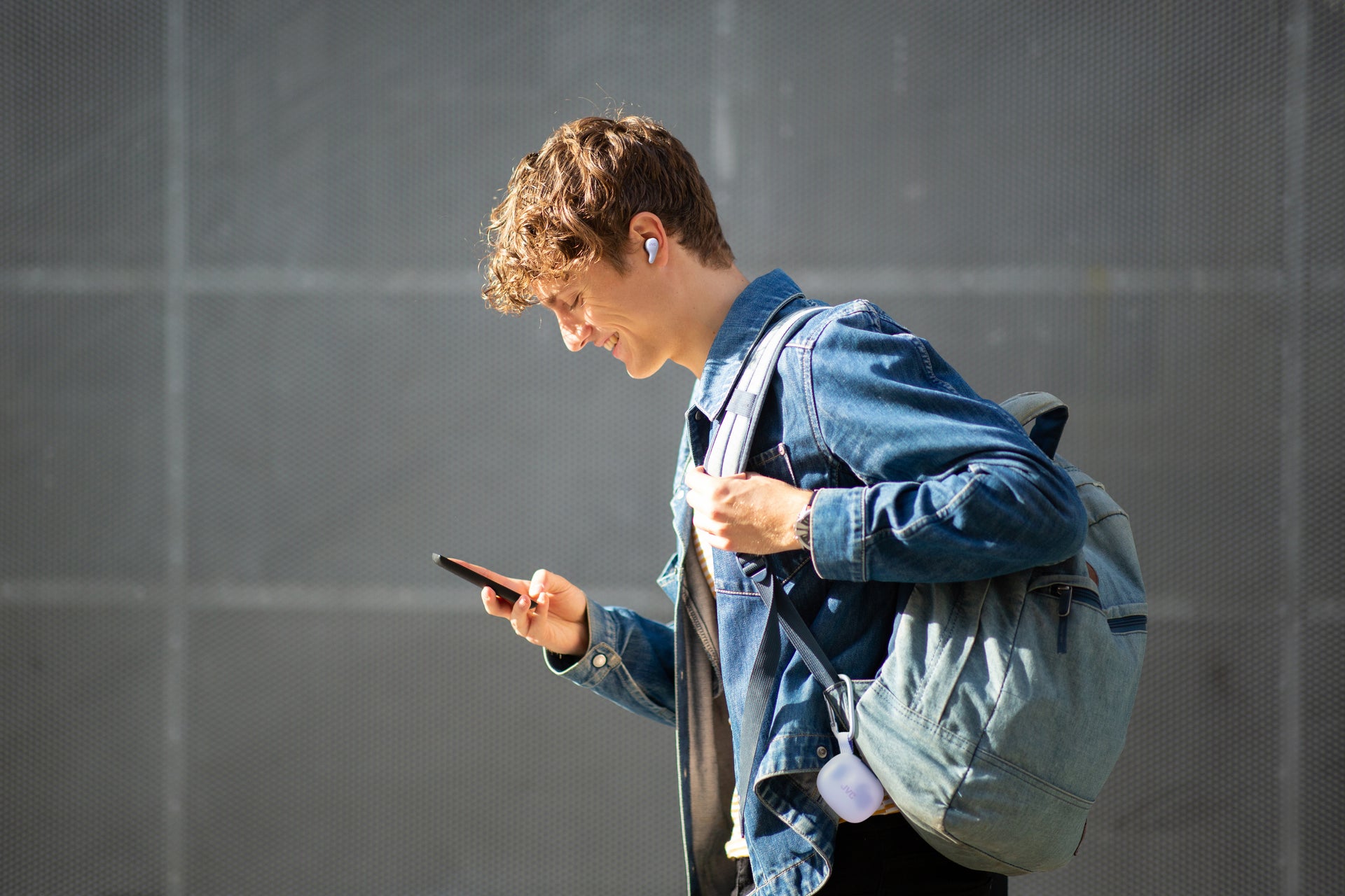 Gumy Premium Wireless Headphones offer a comfortable listening experience with active noise cancellation, an ambient sound mode, and low latency. Their ergonomic stick design ensures a secure fit, while the translucent case adds convenience. Available in four colours, they come with a holder and four sizes of earpieces.